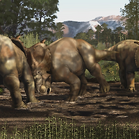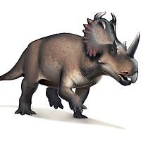 백악기 후기에 북아메리카(캐나다)에서 살았으며 네 발로 걸어다녔습니다. 커다란 방패(프릴)가 특징적인데 가장자리에는 울퉁불통하게 솟은 여러 개의 뿔이 있습니다. 눈 위에 있는 두 개의 긴 뿔로 공격자와 싸웠을 것으로 보입니다.