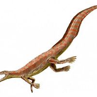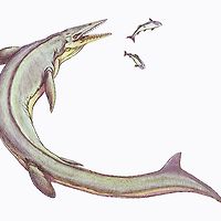 턱은 약하고 끝이 뾰족한 꼬리가 특징입니다. 튼튼한 네 개의 지느러미는 다리가 변해서 된 것으로 헤엄치기에 알맞아 힘차게 앞으로 나아갈 수 있었습니다. 뒷쪽이 앞쪽보다 더 짧고 넓적했습니다. 헤엄칠 때는 주로 앞 지느러미를 사용했고 뒷 지느러미는 방향을 조절하는 역할을 했습니다.