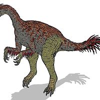 뒷다리는 길었고 짧은 세 개의 손가락을 지녔습니다. 물건을 잡을 수 있었고 가장 안쪽 발톱은 크고 쇠고랑같이 생겼습니다. 부메랑 형태를 한 가랑이 뼈를 가지고 있는데 이 뼈는 시조새와 많이 닮았습니다.